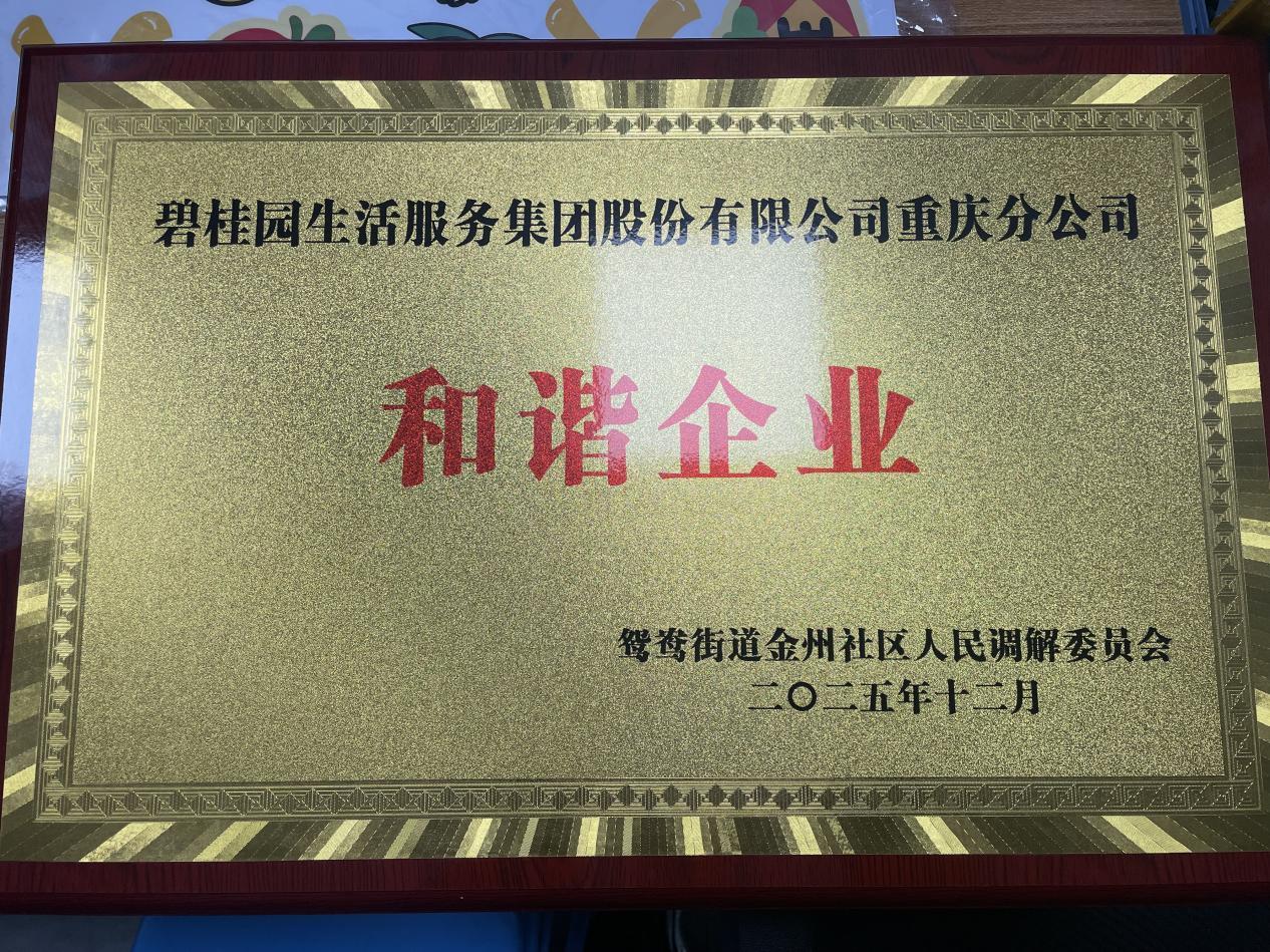 2025年,一块“和谐企业”的奖牌,让这个项目走进了更多人的视野。这块由鸳鸯街道金州社区人民调解委员会授予的奖牌,不仅是对物业工作的肯定,更见证了一个基层治理创新样本的悄然生长。
